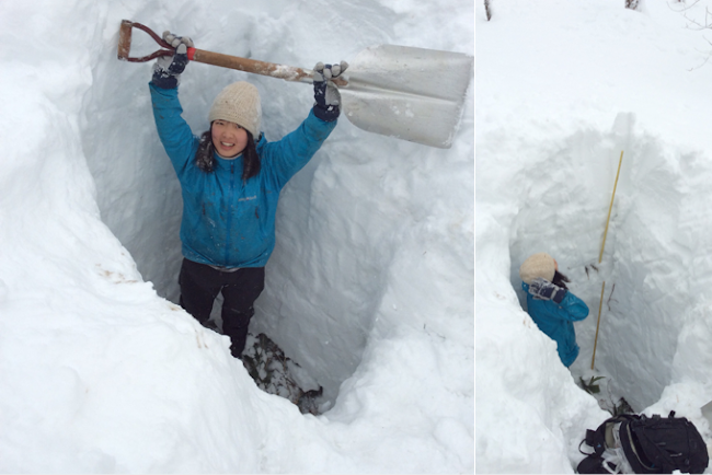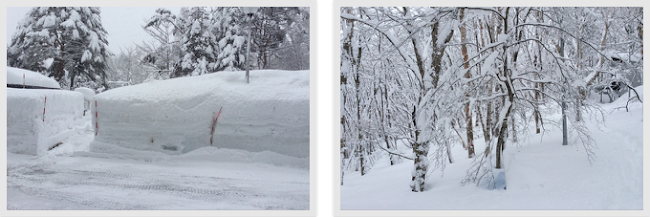 数日前からまた大雪で、新雪を歩くのは大変です。雪は殊の外多くて、2m以上積もっていました。どうにか地面にたどり着きましたが(ちなみに、私は掘ってません)。